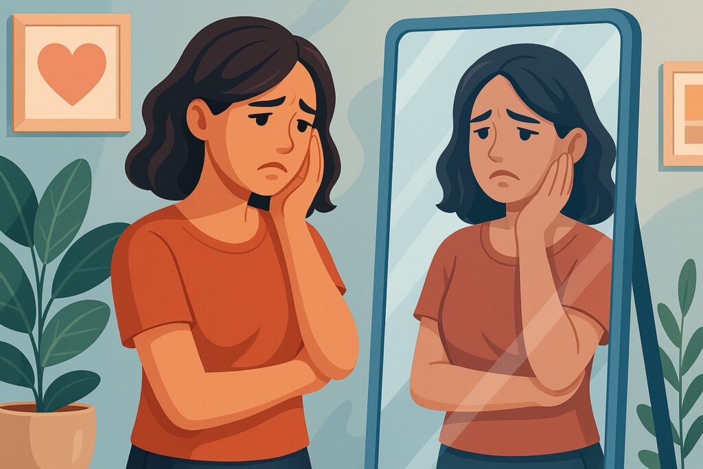 Сыртқы келбетке көңілсіздік түрлі факторларға байланысты болуы мүмкін — әлеуметтік қысым, сұлулық стандарттарының шындыққа сай келмеуі немесе ішкі қорқыныштар. Кейде адам өзін солай қабылдамай, өзін-өзі төмен бағалау салдарынан бейнеге қанағаттанбайды. Психологиялық күйзеліс, шаршау және өмірлік қиындықтар да сыртқы бейненің қабылдауына әсер етеді. Бұл себептерді түсіну — оң өзгерістерге алғашқы қадам.