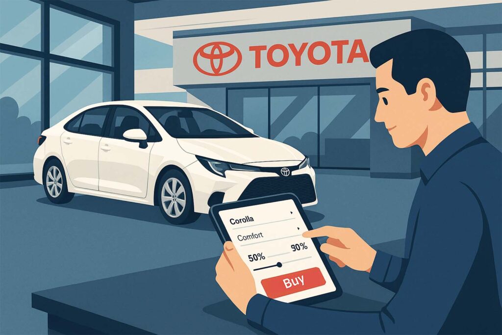Қазақстандағы Toyota компаниясы барлық клиенттеріне, несиені рәсімдеуді жоспарлап отырғандарға, несие калькуляторын пайдалануды ұсынады. Бұл сізге қаржылық міндеттемелерді дәл есептеуге және күтпеген жағдайлардан сақтануға мүмкіндік береді.