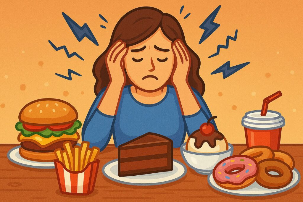 Адам ауыр жағдайға тап болғанда, ағза оны қауіп ретінде қабылдайды. Стресс гормондары, әсіресе кортизол, миға қауіп төнді деп сигнал береді. Осындай кезде ағза тез қуат көзін іздейді, ал жоғары калориялы, тәтті немесе майлы тағамдар қысқа уақыт ішінде ләззат сыйлайды. Бұл – уақытша тыныштандырудың амалы ғана.