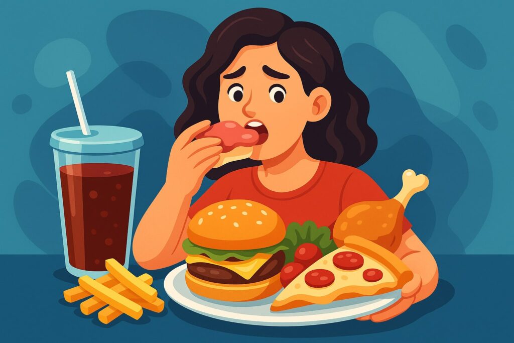 - Эмоциональное питание. Многие используют еду как способ справиться с усталостью, тревогой или скукой. Вместо того чтобы признать и прожить эмоцию, человек заполняет внутреннюю пустоту пищей. Это создаёт кратковременное облегчение, но не решает первопричину, а затем вызывает вину и повтор цикла.