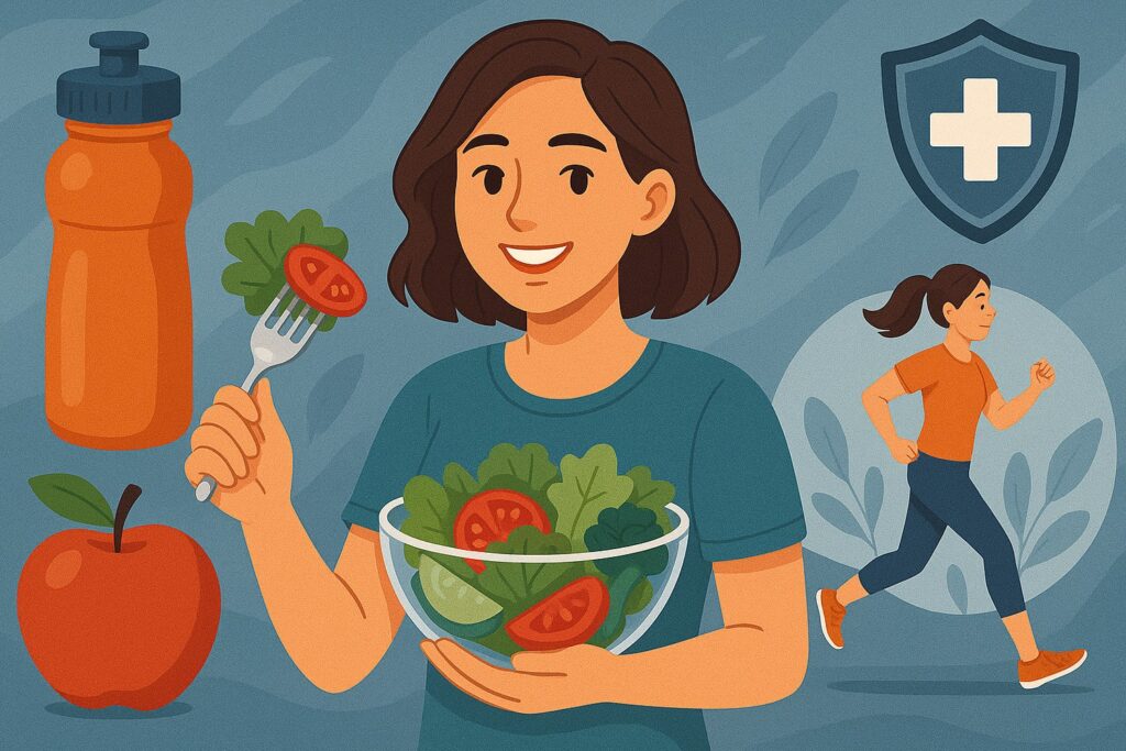 - Правильное питание. Рацион должен быть сбалансированным, насыщенным витаминами, клетчаткой, белками и полезными жирами. Это не строгие ограничения, а осознанный выбор того, что приносит организму пользу. Например, регулярное употребление овощей и цельнозерновых продуктов укрепляет иммунитет и поддерживает энергичность в течение дня.