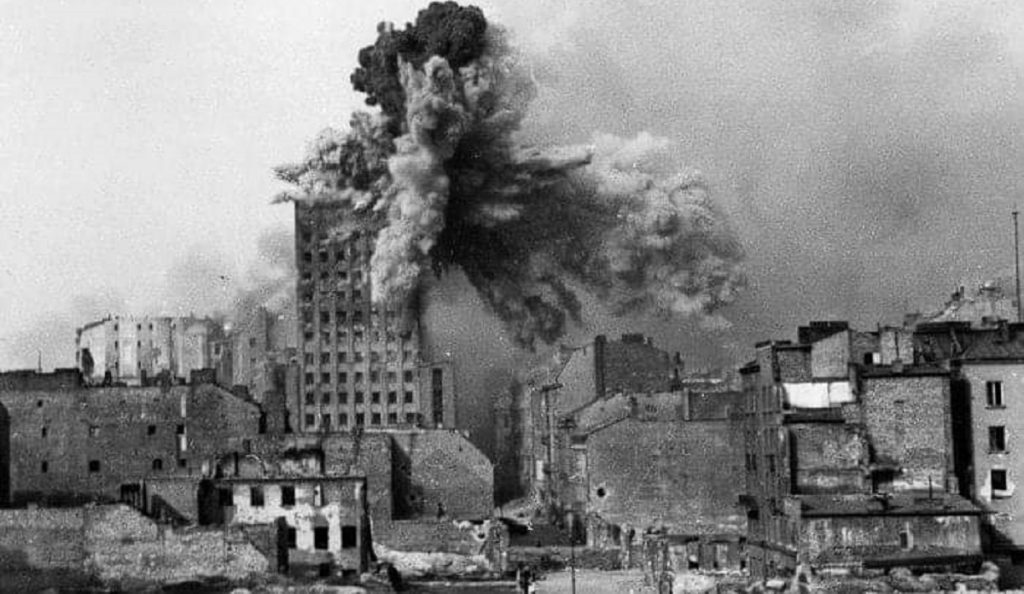 - Во время восстания немецкая армия разбомбила и разрушила все здания в городе.
